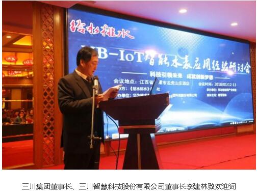 2018年1月13日,由《给水排水》杂志社主办、移动物联网产业联盟承办、华为技术有限公司和星空电子设备有限公司协办、瞭望智库媒体支持的“NB-IoT智能水表应用经验研讨会”在江西鹰潭龙虎山庄会议中心顺利召开。出席会议的专家和领导主要有:北京自来水集团有限责任公司原副总工程师刘百德,华为技术有限公司上海研究所蜂窝物联网产品线副总经理刁志峰,中国城市规划设计研究院城镇水务发展研究所所长、中国城镇供水排水协会秘书处副主任周长青,同济大学教授李树平,鹰潭供水集团有限公司总工程师漆格卡,江西三川集团有限公司董事长、星空电子设备有限公司董事长李建林,水表工作委员会副秘书长、三川智慧常务副总裁宋财华等。本次研讨会共有278人参会,含73家水司领导及19家运营商主要负责人。