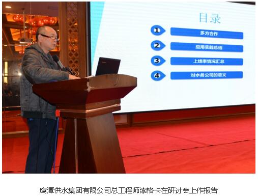 之后,同济大学教授李树平、三川智慧常务副总裁宋财华、鹰潭供水集团有限公司总工程师漆格卡也分别在研讨会上作了《水管网分区计量智能化与供水管网漏损管控中智能水表选型》、《给水管网漏损控制与管理》、《NB-IoT智能水表在鹰潭水司应用》的报告。